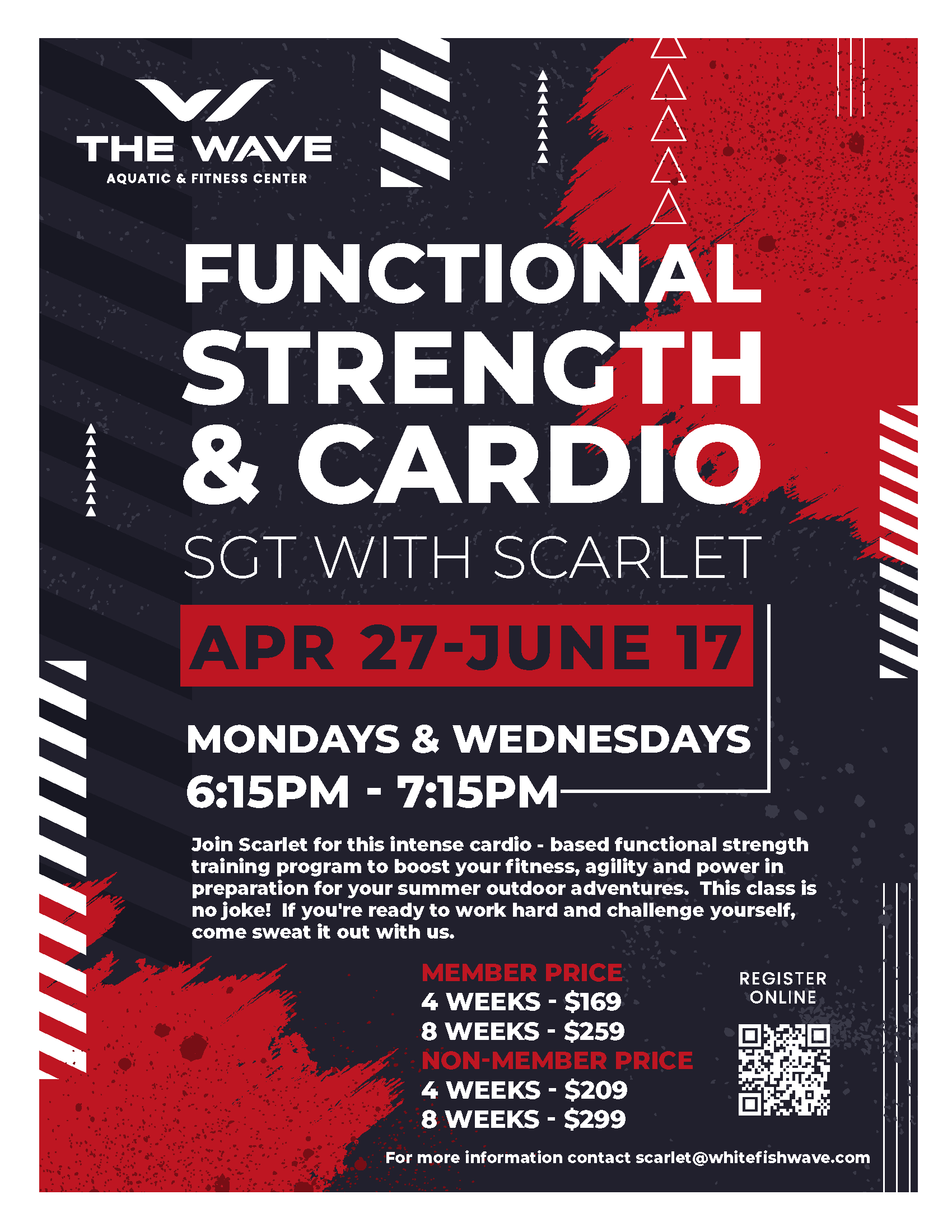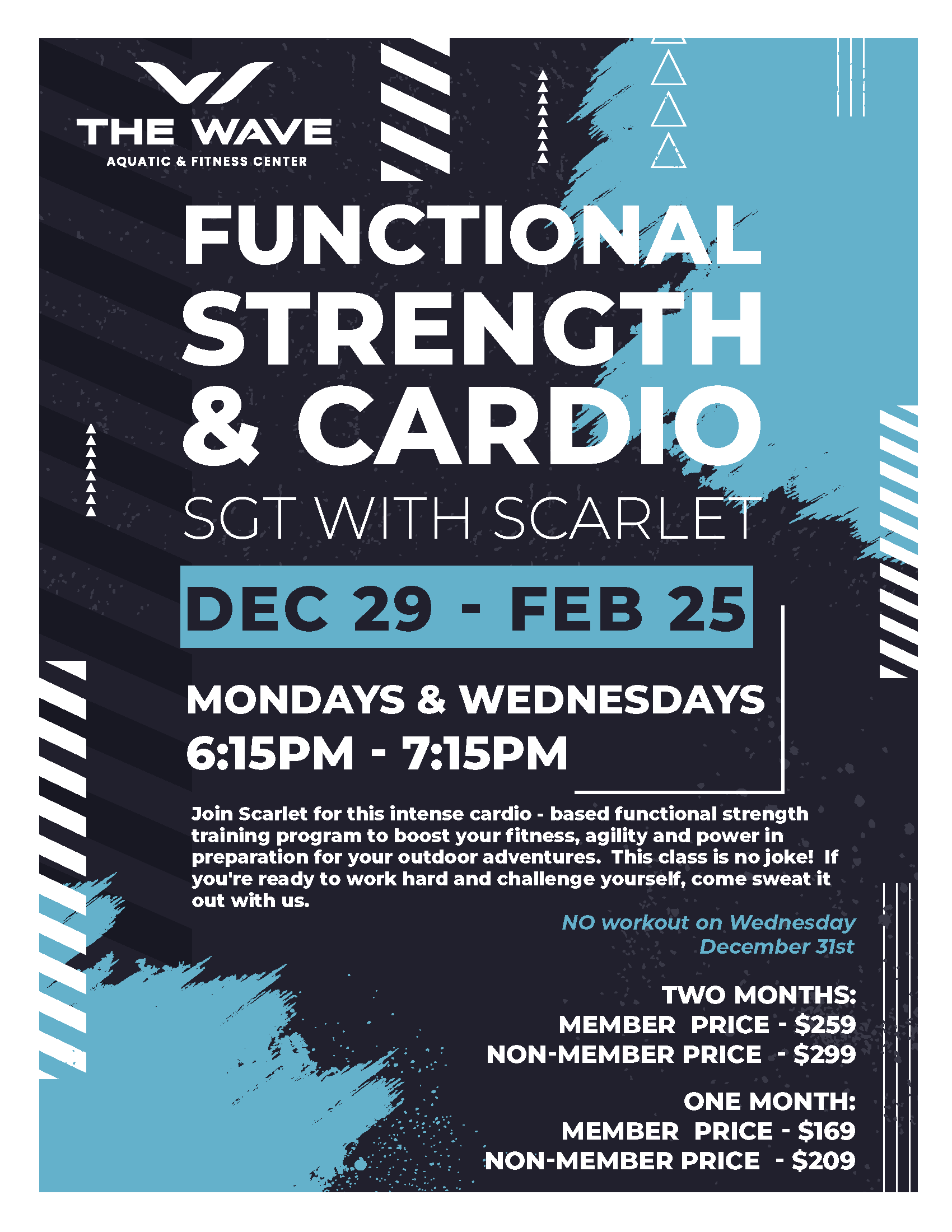 Join Scarlet for this intense cardio – based functional strength training program to boost your fitness, agility and power in preparation for your outdoor adventures. This class is no joke! If you’re ready to work hard and challenge yourself, come sweat it out with us.